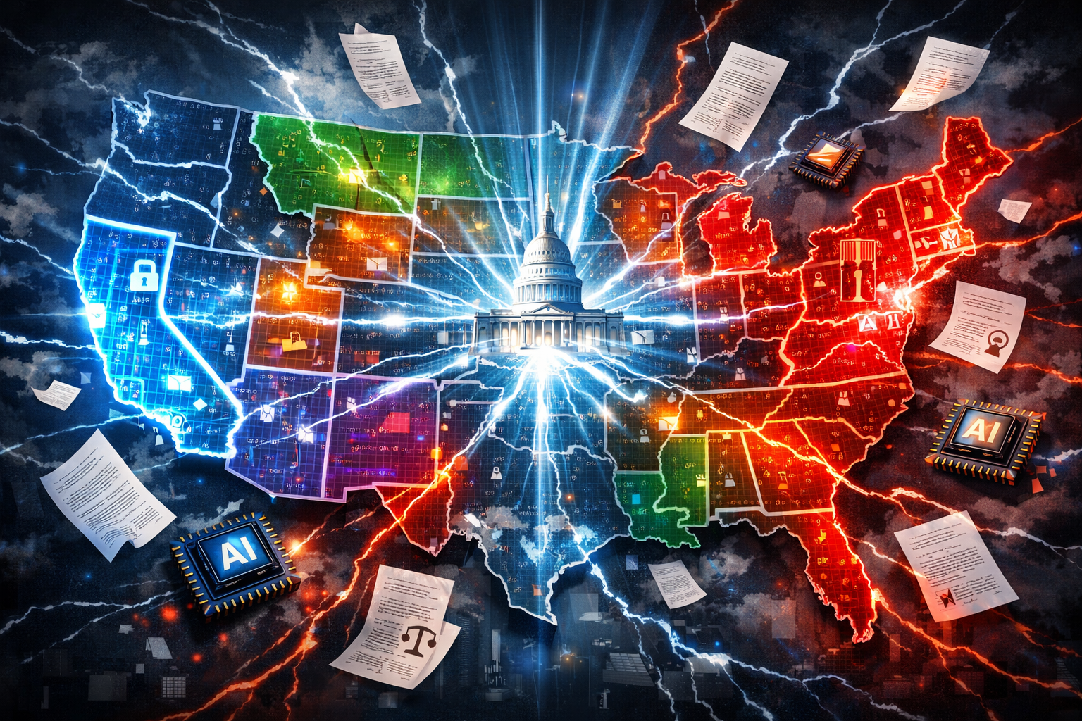 Estados como California y Nueva York avanzaron con leyes propias de seguridad en IA, incluyendo controles sobre modelos avanzados y requisitos de evaluación, mientras otros estados impulsan regulaciones más laxas orientadas a la innovación.