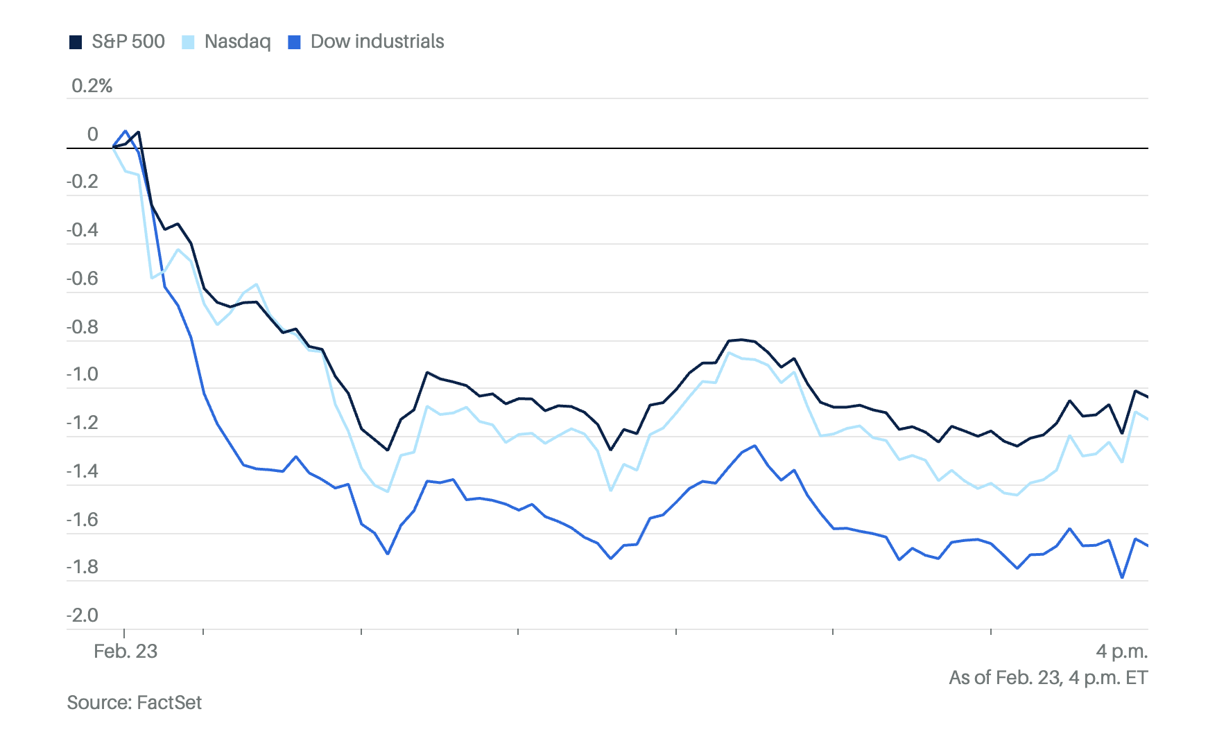 Sensibilidad a narrativas (y trading de titulares): El episodio del informe viral de Citrini Research muestra el canal narrativo: un escenario hipotético 2028 (no un forecast corporativo) disparó ventas en acciones sensibles a agentes de IA. Barron’s consignó que DoorDash cayó 6,9%, American Express 7,9% y Capital One 8% el lunes en un clima donde la “historia IA” dominó el tape.